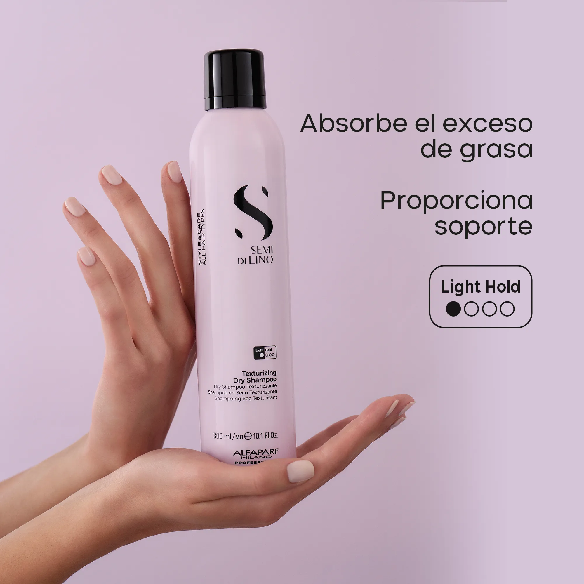 Semi di Lino Texturizing Dry Shampoo es un shampoo seco que proporciona soporte instantáneo y absorbe el exceso de grasa, para un cabello ligero y perfumado.